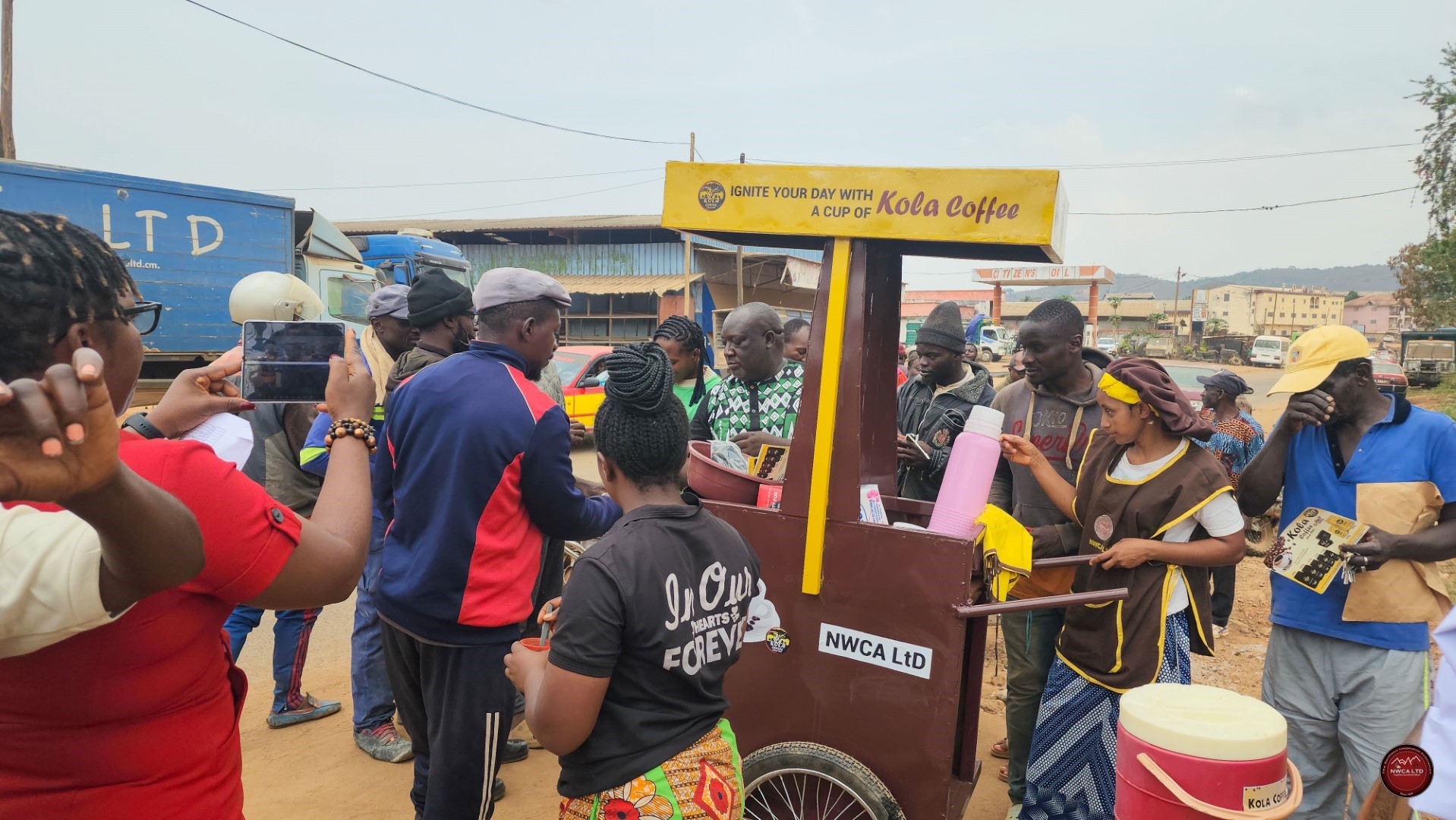 The ceremony ended with a free coffee tasting event where one of the beneficiaries served the bystanding population of the Mile 3 area with free Kola Coffee from her mobile unit.